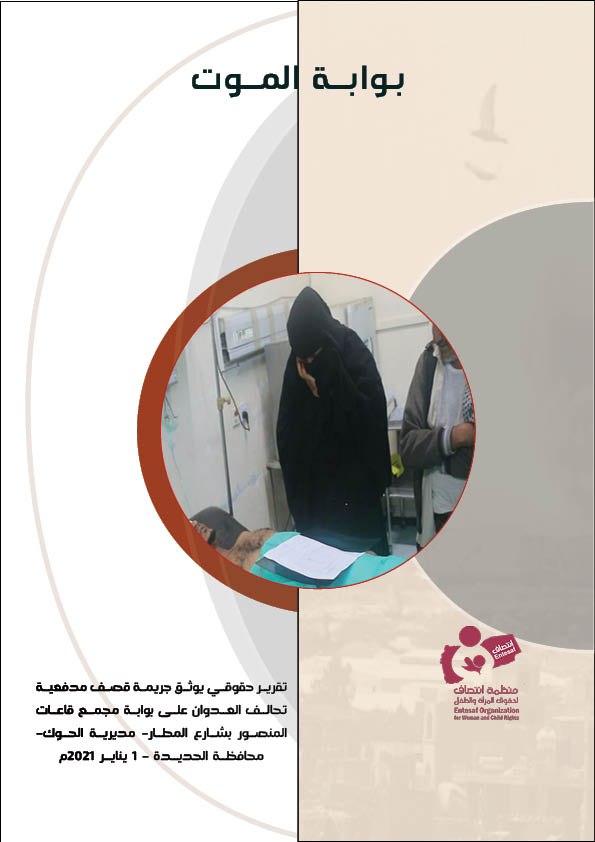 اصدرت منظمة انتصاف لحقوق المرأة والطفل تقريراً حقوقياً بعنوان “بوابة الموت”حيث تناول التقرير جريمة قصف مدفعية تحالف العدوان على بوابة مجمع قاعات المنصور بشارع المطار بمديرية الحوك بمحافظة الحديدة على والتي راح ضحيتها مدنيين بينهم نساء و أطفال، وذلك بتاريخ 1 يناير 2021م