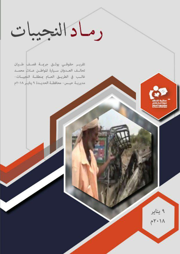 وثقت منظمة انتصاف لحقوق المرأة والطفل تقريراً حقوقياً بعنوان”رماد النجيبات” حيث تناول التقرير الجريمة التي ارتكبها طيران تحالف العدوان على سيارة المواطن  عادل محمد غالب في الطريق العام بمنطقة النجيبات التابعة لمدیریة حيس بمحافظة الحديدة والتي را ح ضحيتها مدنيين بينهم نساء و أطفال، وذلك بتاريخ 9 يناير 2018م