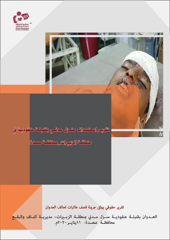 وثقت منظمة انتصاف لحقوق المرأة والطفل تقريراً حقوقياً يوثق ” تقرير استهداف منزل مدني بمنطقة الزبيرات – محافظة صعدة” حيث تناول التقرير الجريمة التي ارتكبها طيران تحالف العدوان على منزل مدني بمنطقة الزبيرات التابعة لمديرية كتاف و البقع بمحافظة صعدة والتي را ح ضحيتها مدنيين بينهم نساء و أطفال، وذلك بتاريخ 11 يناير 2020م