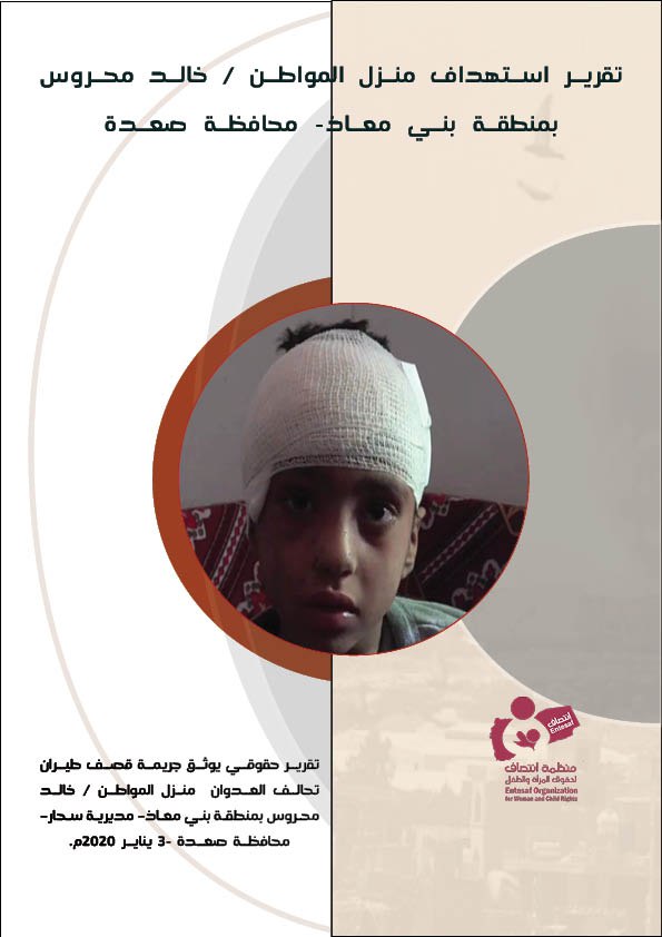 اصدرت منظمة انتصاف لحقوق المرأة والطفل تقريراً حقوقياً يوثق “استهداف منزل المواطن خالد محروس بمنطقة بني معاذ بمحافظة صعدة”حيث تناول التقرير جريمة قصف مدفعية تحالف العدوان على منزل المواطن خالد محروس بمنطقة بني معاذ بمديرية سحار بمحافظة صعدة على والتي راح ضحيتها مدنيين بينهم نساء و أطفال، وذلك بتاريخ 3 يناير 2020م