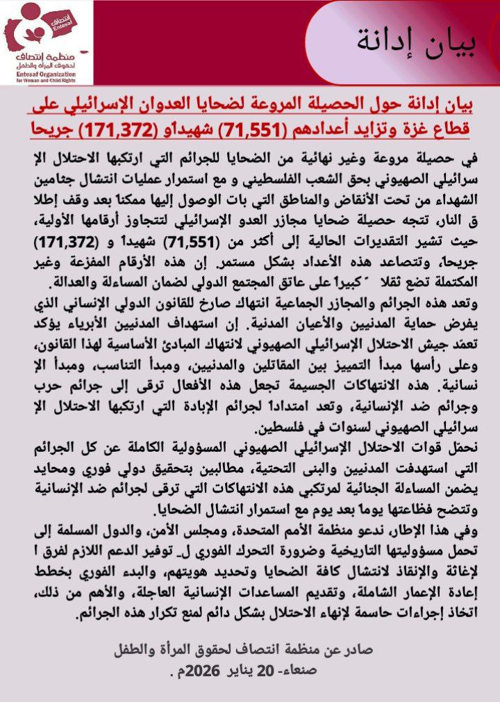 صادر عن منظمة انتصاف لحقوق المرأة والطفل صنعاء