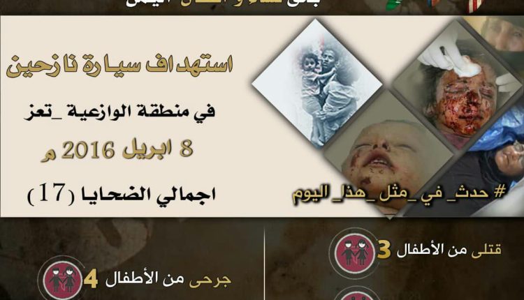 #لن_ننسى #حدث_في_مثل_هذا_اليوم استهدف فيها سيارة نازحين في منطقة الوازعية _ محافظة #تعز 8/ابريل/2016م
