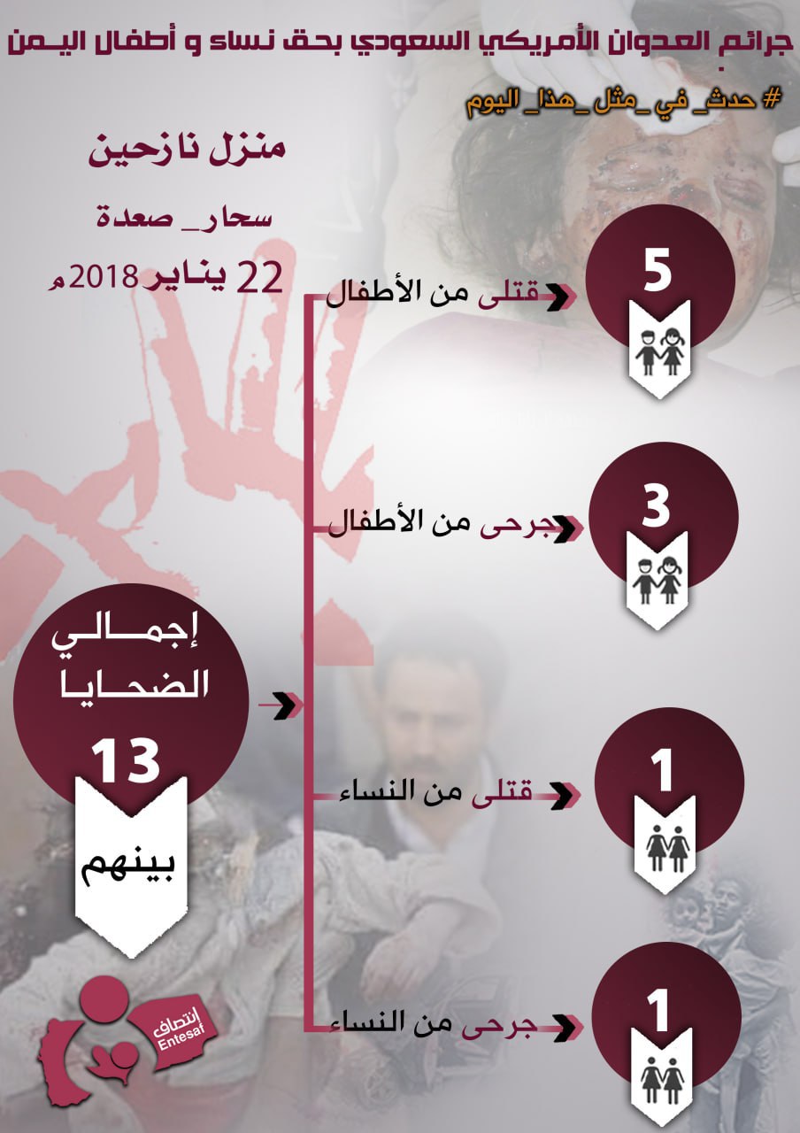 #لن_ننسى #حدث_في_مثل_هذا_اليوم #جرائم_العدوان_الأمريكي_السعودي بحق نساء و أطفال اليمن 22/ يناير/2018م