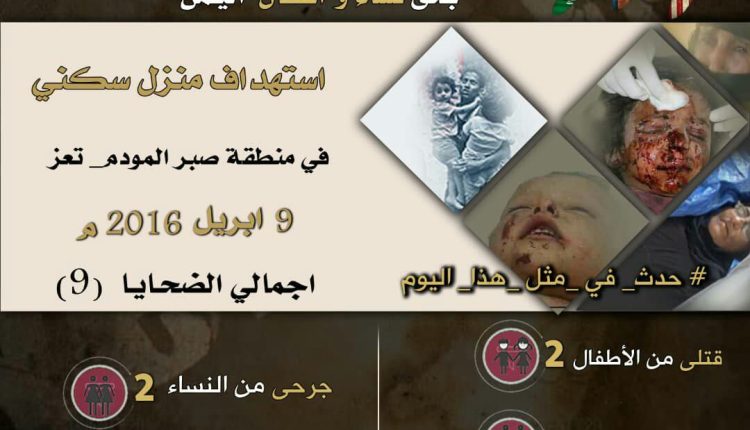استهدف فيها منزل سكني في منطقة صبر المودم _ محافظة #تعز