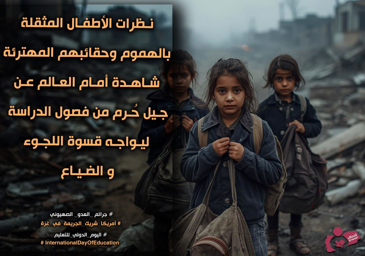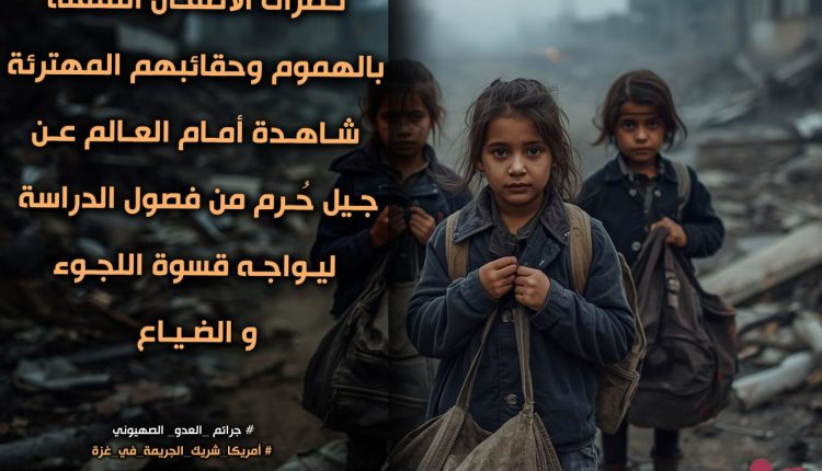 نظرات الأطفال المثقلة بالهموم و حقائبهم المهترئة شاهدة أمام العالم عن جيل حرم من فطول الدراسة ليواجة قسوة اللجوء و الضياع