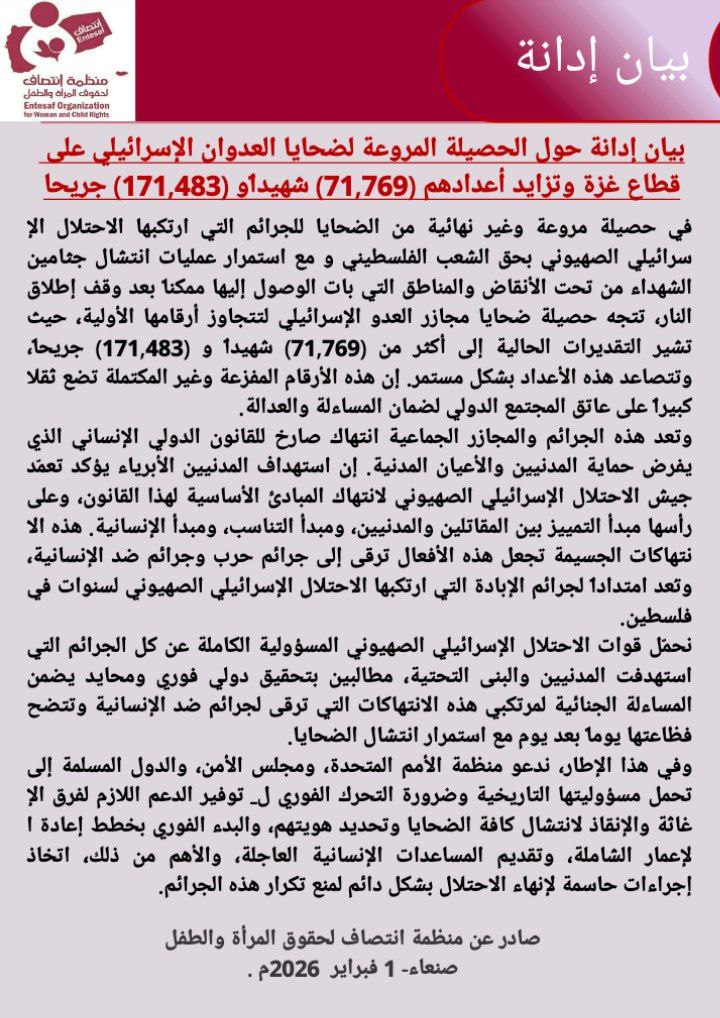 صادر عن منظمة انتصاف لحقوق المرأة والطفل صنعاء