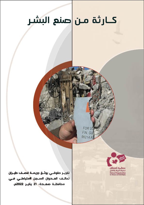 اصدرت منظمة انتصاف لحقوق المرأة والطفل تقريراً حقوقياً بعنوان ” كارثة من صنع البشر “حيث تناول التقرير جريمة قصف طيران تحالف العدوان على السجن الاحتياطي بمحافظة صعدة والتي راح ضحيتها مدنيين بينهم نساء و أطفال، وذلك بتاريخ 21 يناير 2022م