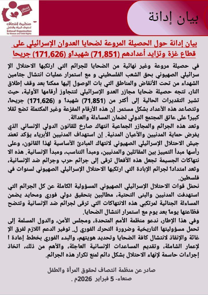 صادر عن منظمة انتصاف لحقوق المرأة والطفل صنعاء