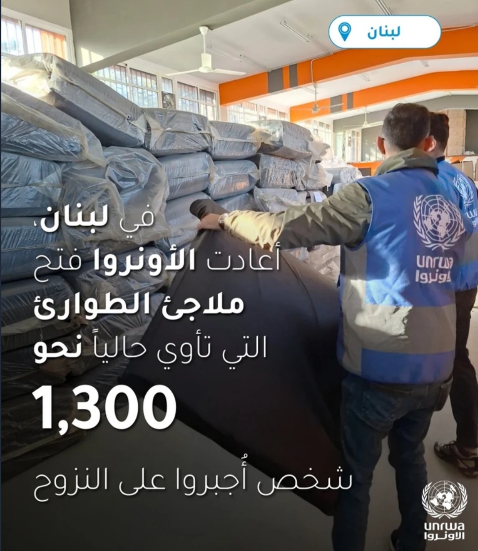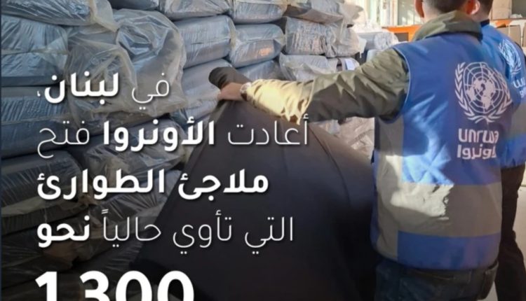 وأضافت الوكالة في تدوينة، أنها أعادت فتح مراكز إيواء طارئة في منشآتها، حيث وصل إليها 1300 شخص نازح حتى الآن.