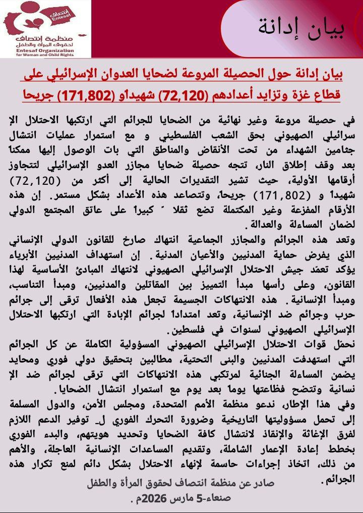صادر عن منظمة انتصاف لحقوق المرأة والطفل صنعاء