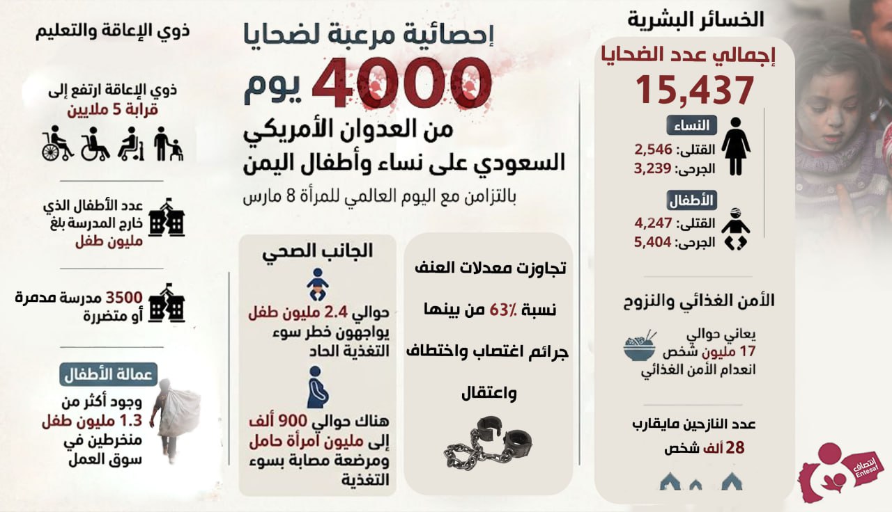 بمناسبة مرور 4000يوم من العدوان الأمريكي السعودي على اليمن وبالتزامن مناسبة اليوم العالمي للمرأة 8 مارس