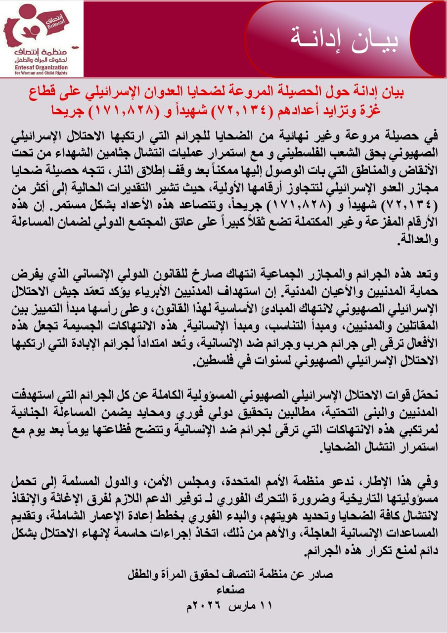 صادر عن منظمة انتصاف لحقوق المرأة والطفل صنعاء