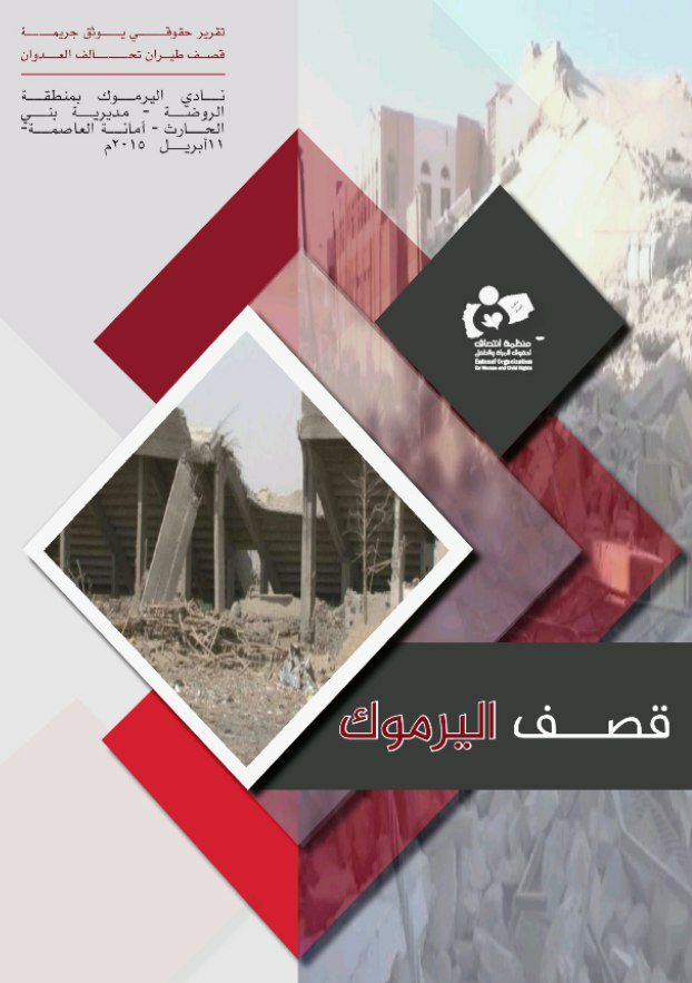 وثقت منظمة انتصاف لحقوق المرأة والطفل تقريراً حقوقياً بعنوان ” قصف اليرموك” حيث تناول التقرير جريمة قصف طيران العدوان نادي اليرموك بمنطقة الروضة بمديرية بني الحارث التابعة لأمانة العاصمة والتي را ح ضحيتها مدنيين بينهم نساء و أطفال، وذلك بتاريخ 11 ابريل 2015م