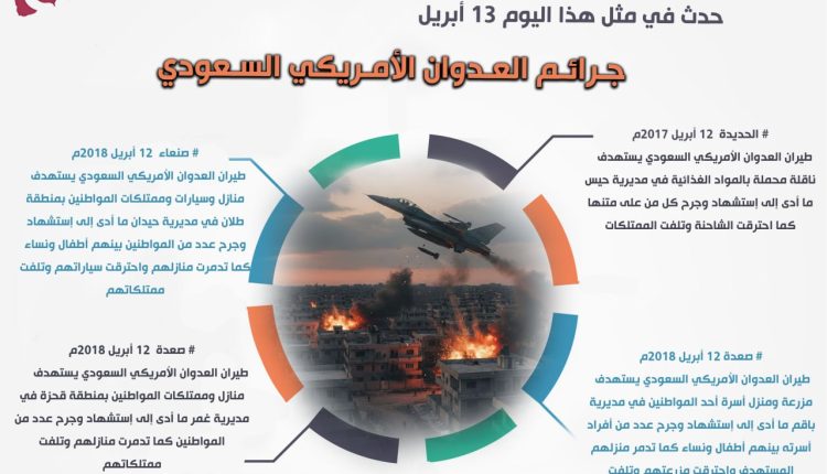 صعدة: طيران العدوان الأمريكي السعودي يستهدف مزرعة ومنزل أسرة أحد المواطنين في مديرية باقم ما أدى إلى إستشهاد وجرح عدد من أفراد أسرته بينهم أطفال ونساء كما تدمر منزلهم المستهدف واحترقت مزرعتهم وتلفت ممتلكاتهم