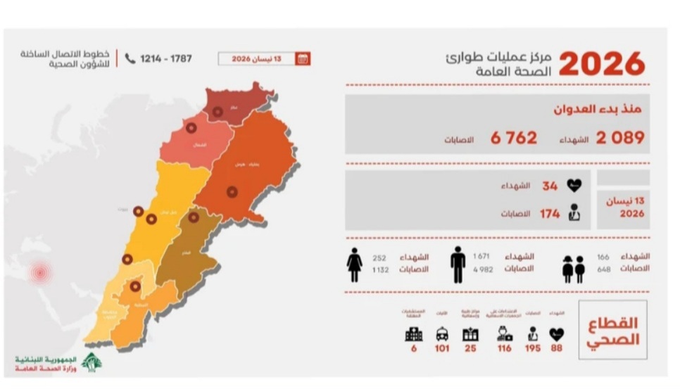 ارتفعت حصيلة ضحايا العدوان الإسرائيلي على لبنان، اليوم الاثنين، إلى 2089 شهيداً و6762 جريحاً، منذ بداية التصعيد الصهيوني الأخير في الثاني من مارس الجاري.