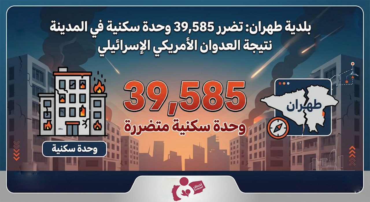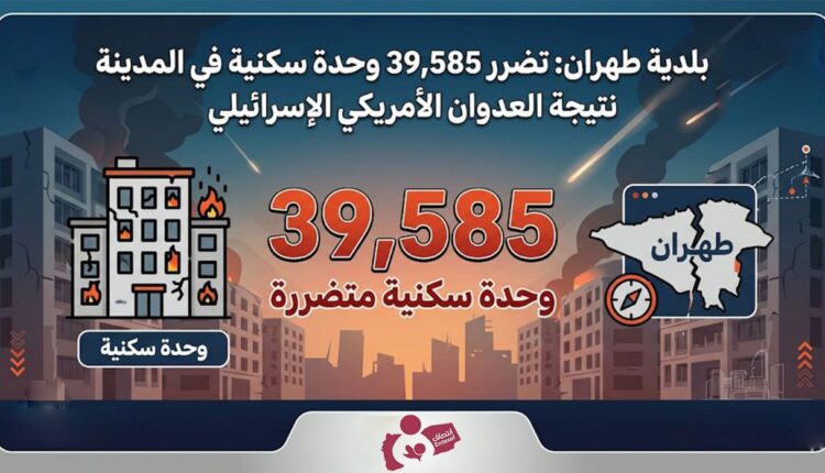 بلدية طهران: تضرر 39,585 وحدة سكنية في المدينة نتيجة العدوان الأمريكي الإسرائيلي