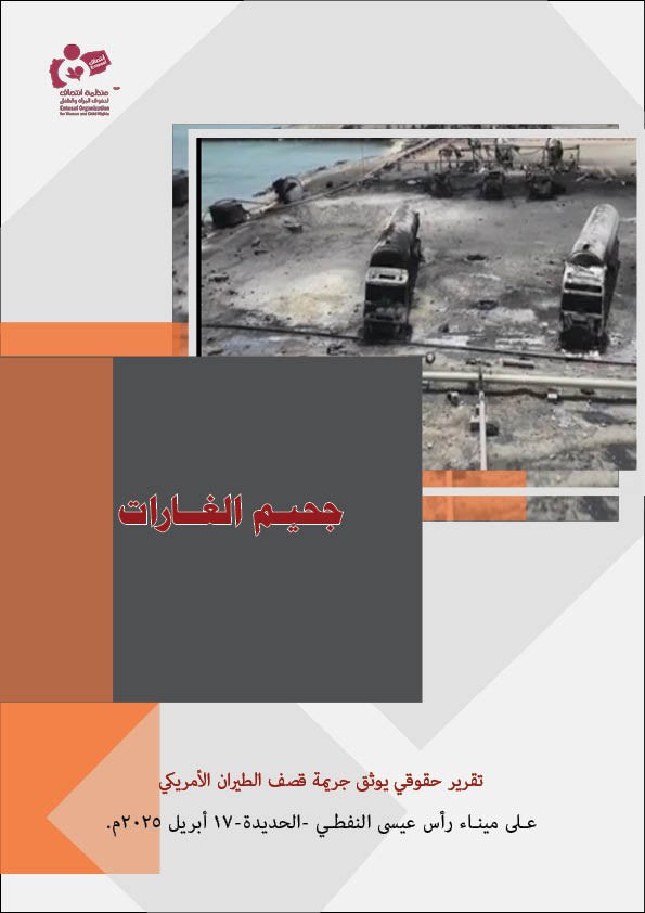 وثقت منظمة انتصاف لحقوق المرأة والطفل تقريراً حقوقياً بعنوان “جحيم الغارات”حيث تناول التقرير الجريمة التي ارتكبها طيران العدوان الأمريكي على ميناء رأس عيسى النفطي بمحافظة الحديدة والتي راح ضحيتها مدنيين بينهم نساء و أطفال، وذلك بتاريخ 17 أبريل 2025م