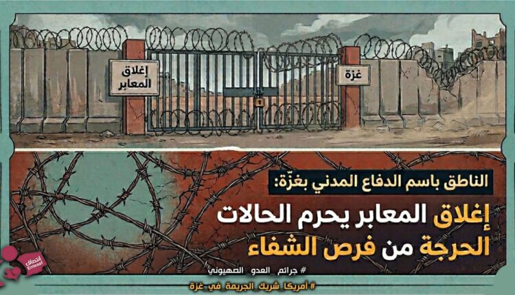 الناطق باسم الدفاع المدني بغزّة: إغلاق المعابر يحرم الحالات الحرجة من فرص الشفاء