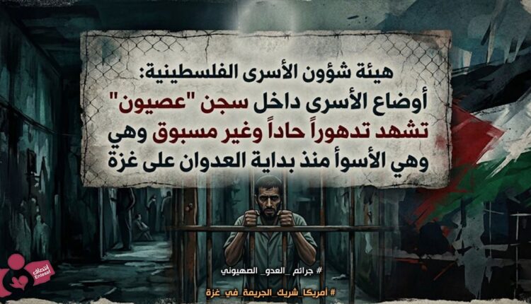 هيئة شؤون الأسرى الفلسطينية: أوضاع الأسرى داخل سجن “عصيون” تشهد تدهوراً حاداً وغير مسبوق وهي الأسوأ منذ بداية العدوان على غزة