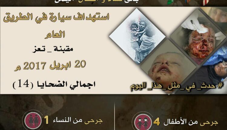 استهدف فيها سيارة بالطريق العام بمنطقة مقبنة محافظة #تعز