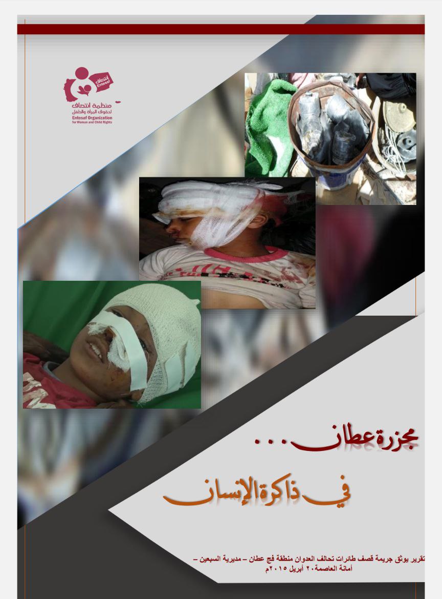 وثقت منظمة انتصاف لحقوق المرأة والطفل تقريراً حقوقياً بعنوان “مجزرة عطان في ذاكرة الإنسان” حيث تناول التقرير جريمة قصف طيران تحالف العدوان على منطقة فج عطان بمديرية السبعين تالتابعة لامانة العاصمة والتي را ح ضحيتها مدنيين بينهم نساء و أطفال، وذلك بتاريخ 20 ابريل 2015م