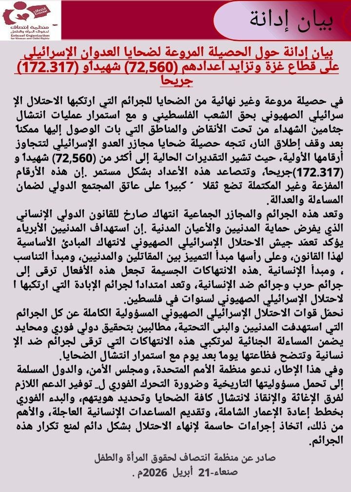 صادر عن منظمة انتصاف لحقوق المرأة والطفل صنعاء