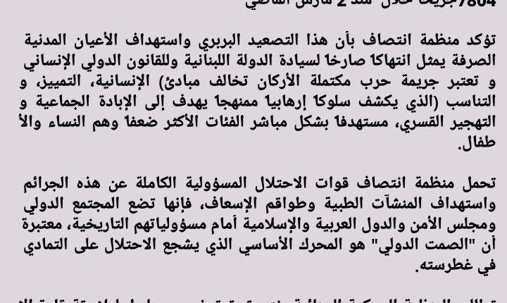 منظمة انتصاف – بيان ادانة