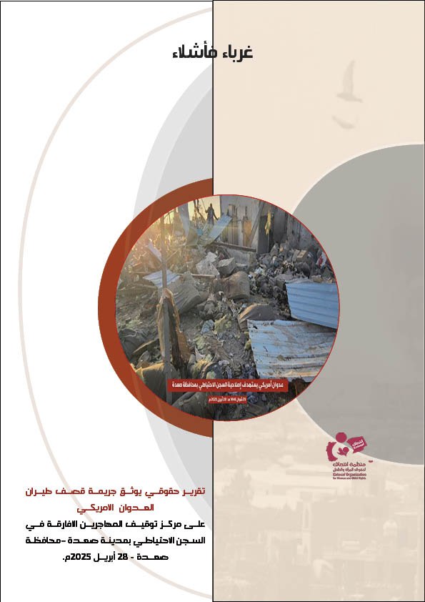 وثقت منظمة انتصاف لحقوق المرأة والطفل تقريراً حقوقياً بعنوان  ” غرباء فاشلاء “حيث تناول التقرير جريمة قصف طيران تحالف العدوان على مركز توقيف المهاجرين الافارقة في السجن الاحتياطي بمدينة صعدة بمحافظة صعدة والتي راح ضحيتها مدنيين بينهم نساء و أطفال، وذلك بتاريخ 28 ابريل 2025م