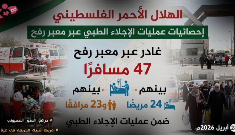 غادر عبر معبر رفح 47 مسافراً، بينهم 24 مريض ، و 23 مرافقا.