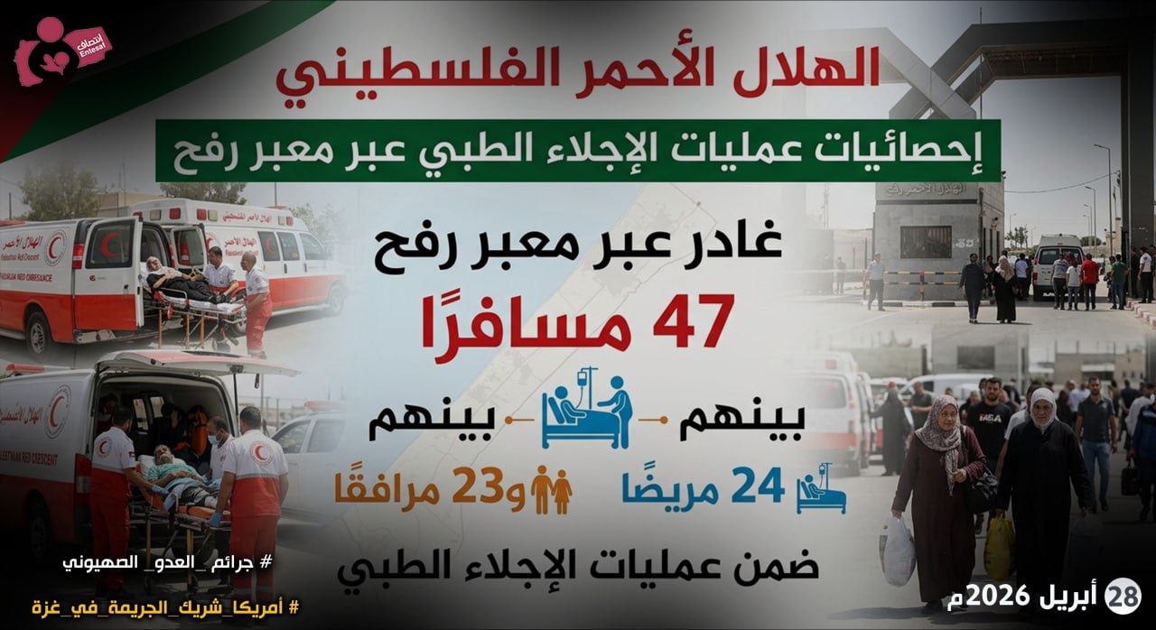 الهلال الأحمر الفلسطيني احصائيات عمليات الاجلاء الطبي عبر معبر رفح