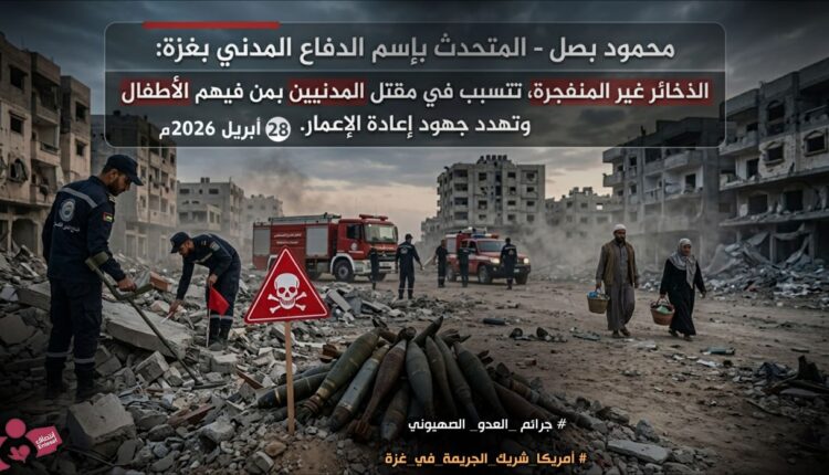 محمود بصل-المتحدث باسم الدفاع المدني بغزة الذخائر غير المنفجرة، تتسبب في مقتل المدنيين بمن فيهم الأطفال وتهدد جهود إعادة الإعمار