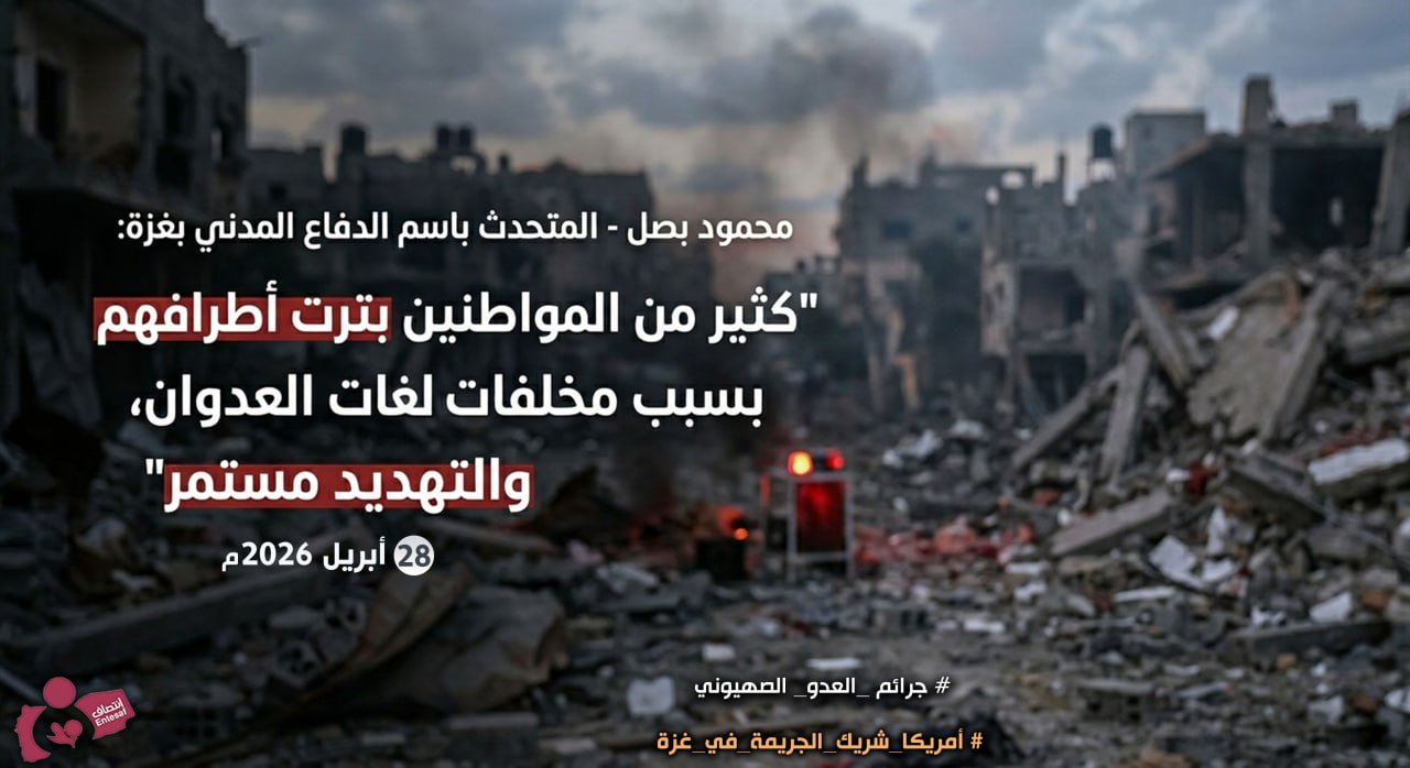 محمود بصل-المتحدث باسم الدفاع المدني بغزة كثير من المواطنين بترت أطرافهم بسبب مخلفات العدوان، والتهديد مستمر