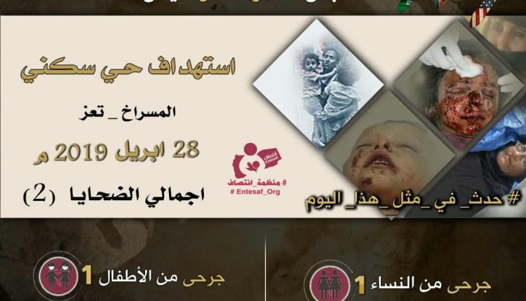 استهدف فيها حي سكني بمنطقة المسراخ محافظة #تعز