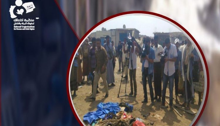 منظمة_انتصاف لحقوق المرأة والطفل تصدر تقرير يوثق جريمة قصف طائرات تحالف العدوان على المدنيين في سوق الخميس الشعبي– مستبأ-محافظة حجه15مارس2016م