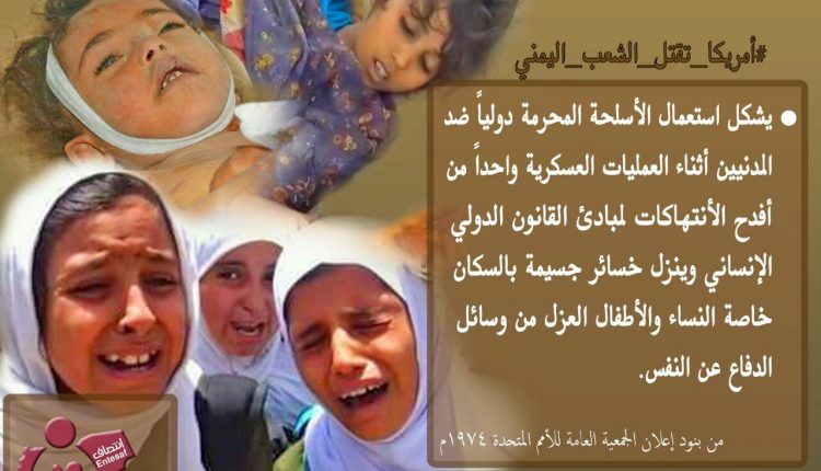 يشكل استعمال الأسلحة المحرمة دوليا” ضد المدنيين أثناء العمليات العسكرية واحدا”من أفدح الأنتهاكات لمبادئ القانون الدولي الإنساني وينزل خسائر جسيمة بالسكان خاصة النساء والأطفال العزل من وسائل الدفاع عن النفس