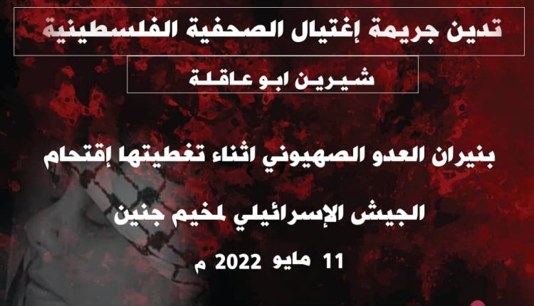 تدين منظمة #انتصاف لحقوق المرأة والطفل استمرار جرائم كيان الاحتلال الاسرائيلي بحق الاعلامية في قناة الجزيرة الصحفية شيرين أبوعاقلة خلال تغطيتها لجرائم اقتحام العدو لمخين جنين وذلك يوم الاربعاء بتاريخ 11/5/2022م