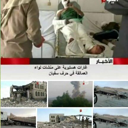 #عمران: طيران العدوان الأمريكي السعودي يستهدف شاحنة محملة بالأسمنت ومباني معسكر العمالقة في مديرية حرف سفيان ما أدى إلى إستشهاد وجرح عدد من المواطنين كما تدمرت مباني المعسكر واحترقت الناقلة وتلفت الممتلكات