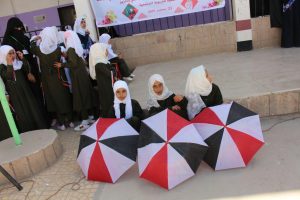 فعالية منظمة انتصاف في مدرسة الراعي لتشجيع الطالبات ببداء عام جديد رغم القصف للمدرسة
