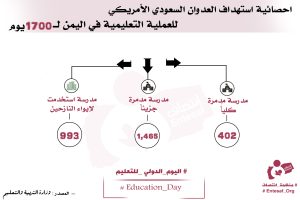 احصائيه استهداف العدوان السعودي الأمريكي للعملية التعليميه في اليمن في نوفمبر 6, 2021 0 مشاركة منظمة انتصاف – انفوجرافيك احصائيهاستهداف العدوانالعملية التعليميةاليمن 0 مشاركة FacebookTwitterGoogle+ReddItWhatsAppPinterestالبريد الإلكتروني