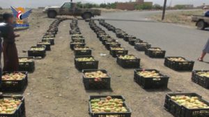 سيّر أبناء محمية خربة سعوان في مديرية بني حشيش محافظة صنعاء اليوم قافلة فرسك “خوخ”، للمرابطين في جبهات الدفاع عن الوطن.