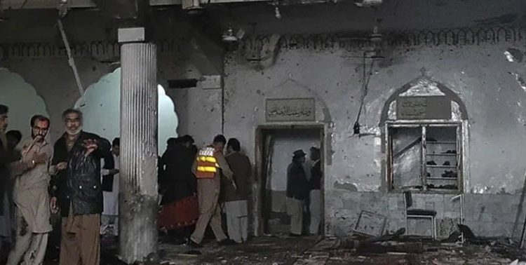 The attack happened during afternoon worship in the provincial capital of Peshawar, close to former tribal areas that border Afghanistan where militancy has been steadily rising.