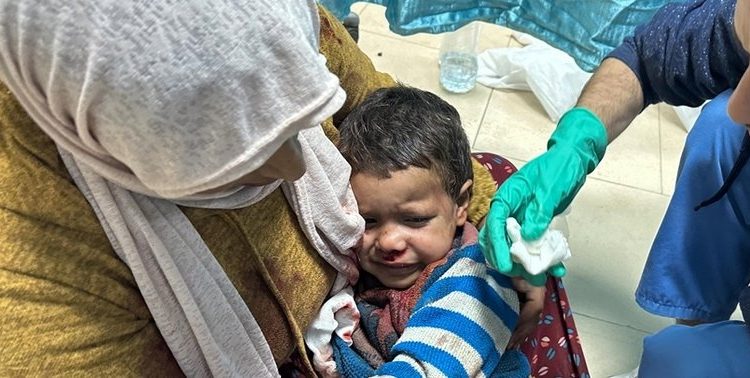 Another child, not more than 3 years old, was observed embracing his mother, blood seeping from his nose. A medic tried to sanitize the child’s wounds sustained during the Deir al-Balah airstrike, according to his mother.