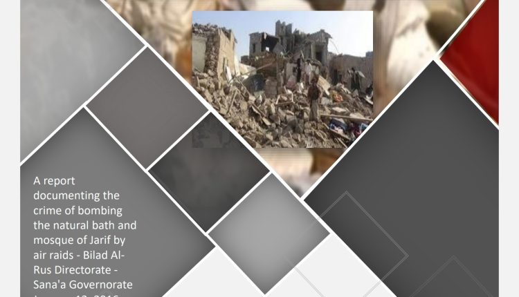 A report documenting the crime of bombing the natural bath and mosque of Jarif by air raids – Bilad Al- Rus Directorate – Sana’a Governorate January 12, 2016.
