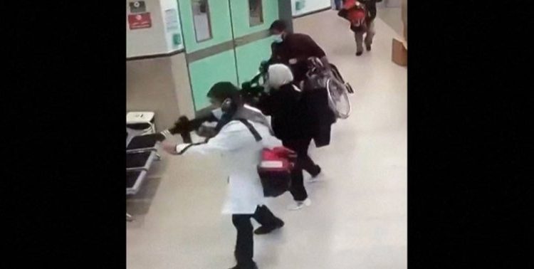 In a viral video posted on the social media platform X, Israeli soldiers are seen brandishing guns and terrorizing staff and patients inside the hospital. One of the soldiers, dressed entirely in black, can be seen forcing a Palestinian to drop to his knees with his hands raised.