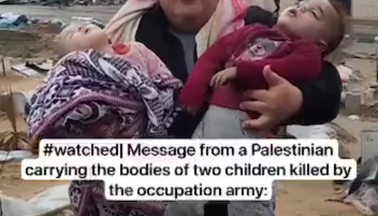 watch : A Palestinian’s message while carrying the bodies of two children killed by the occupation army: “I say to Biden and Blinken, what did they do?”