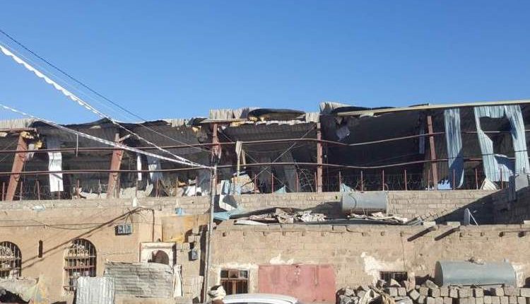 Almasirah Net correspondent reported that several houses were damaged and people panicked, especially children, as a result of aggression’s air raids that targeted Bab Al-Yemen area in Al-Safia district, and food stores in Al-Hasaba area in Al-Thawra district.