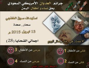 Infographic of the aggression forces committed several crimes against civilians in Yemeni governorates..