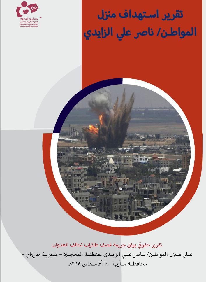 Entesaf Organization for Women and Children’s Rights documented a human rights report entitled “Report on Targeting the Home of Citizen Nasser Ali Al-Zaidi.” The report addressed the crime of the coalition’s airstrike on the home of citizen Nasser Ali Al-Zaidi in the Al-Mahjazah area of the Sirwah district of Ma’rib Governorate, which killed civilians, including women and children, on August 10, 2018.