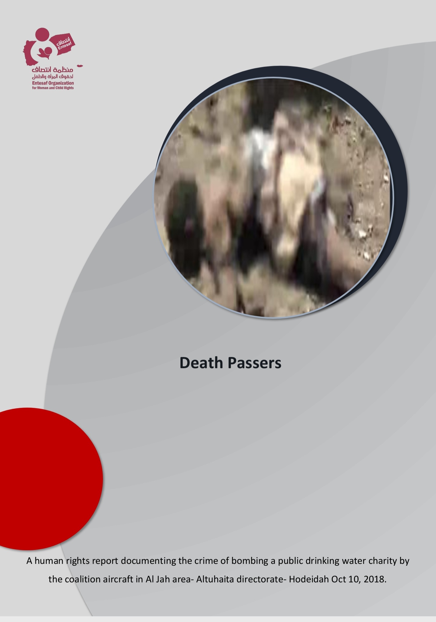 Entesaf for woman and child Rights released a human rights’ report entitled “Death Passers”, where the report covered the crime committed by the coalition of aggressiton against civilians in Al Jah area- Hodeidah, which killed 5 children, on Oct 10, 2018.
