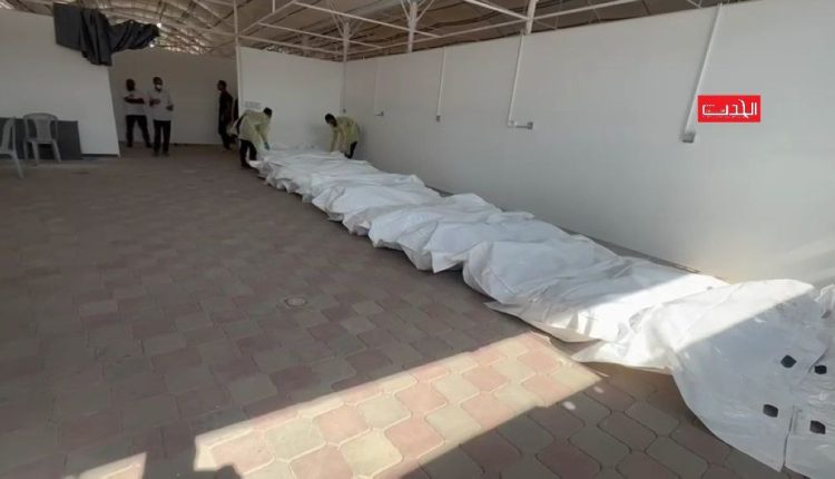 Gaza’s Ministry of Health set up a screen at Nasser Medical Complex in Khan Younis to help identify the remains of slain Palestinians recently released by Israel.